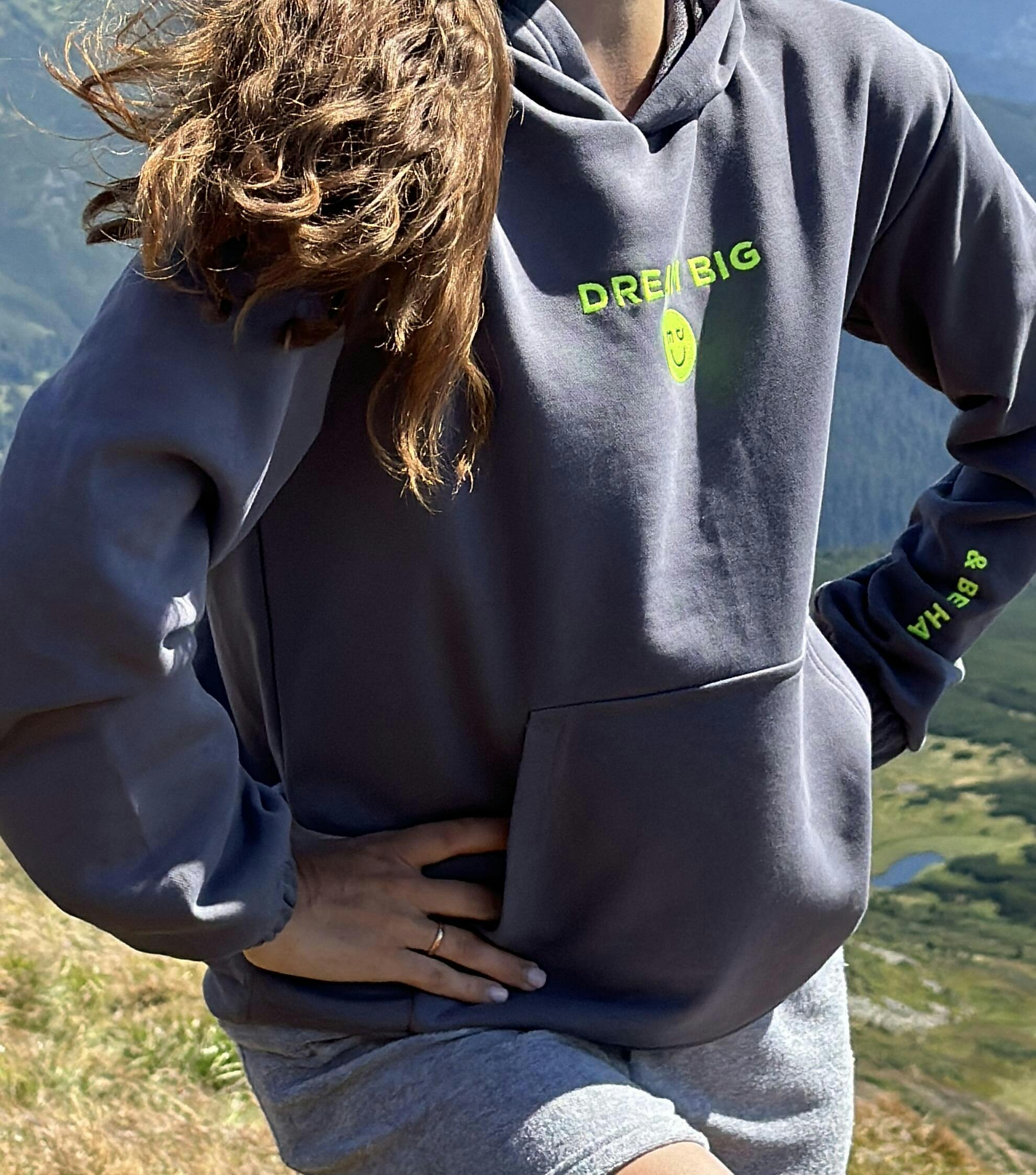 Entdecke unsere Partner-Look Hoodies und Joggers! Erhältlich in zwei Farben, Milchweiß und Grau, mit aufgenähten Neon-Smileys und coolen Statements, die dich dazu inspirieren, große Träume zu haben und glücklich zu sein. Verfügbar in allen Größen von 3-4 Jahren bis L/XL. Diese Outfits sind perfekt, um gemeinsam zu strahlen und einen positiven Ausdruck zu setzen. Hol dir jetzt deinen Partner-Look und lebe deinen Stil!