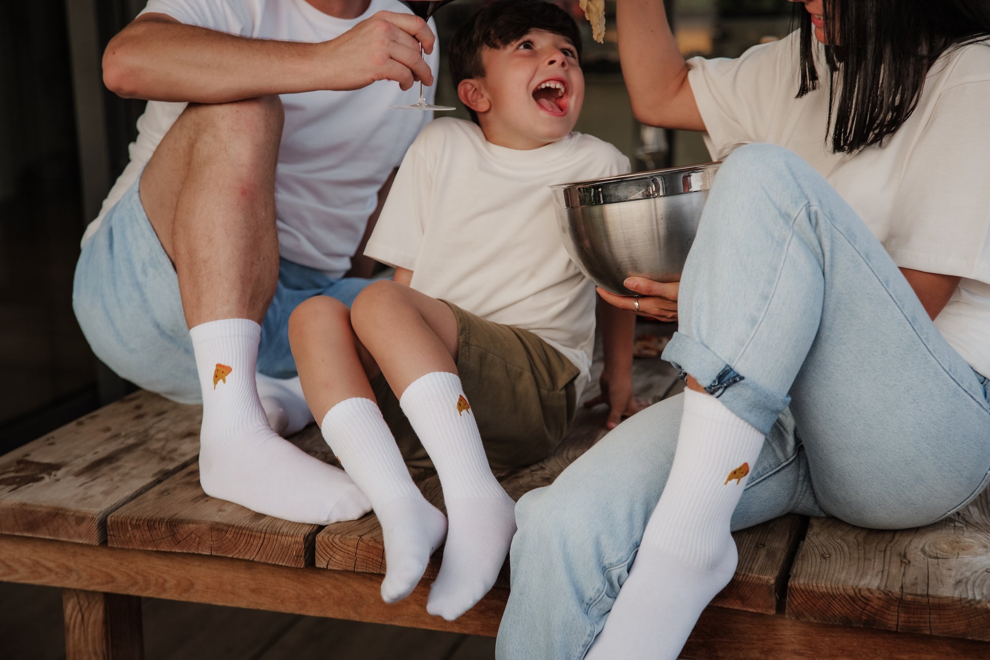 Unsere Pizza-Socken mit liebevoller Stickerei sind ein echter Leckerbissen für alle, die gutes Essen und guten Stil lieben.