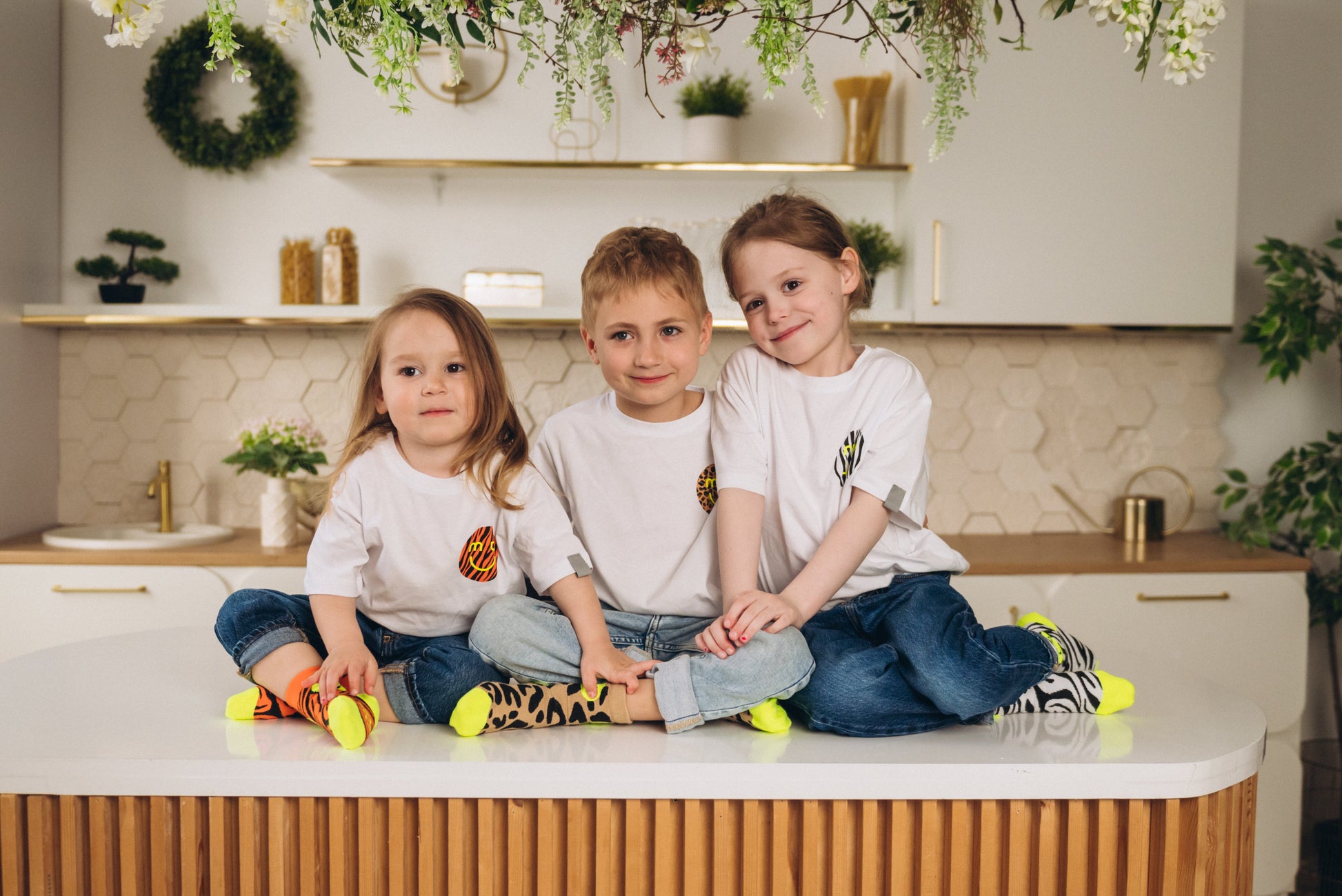 Check mal unsere coolen T-Shirts mit Animalprints-Smileys! Und das Beste: Du kannst sie mit passenden Socken kombinieren und einen lässigen Familien-Look kreieren – voll im Trend! In allen Größen verfügbar… von gross bis klein…. Jetzt deinen Style finden und gemeinsam strahlen!